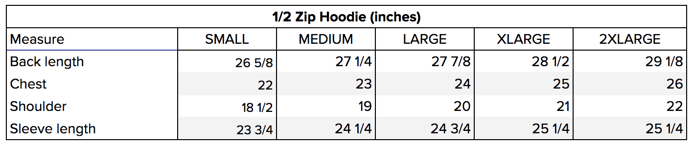 The 1/2 Zip Hoodie is Made-to-Order with a production time of 3-5 weeks.